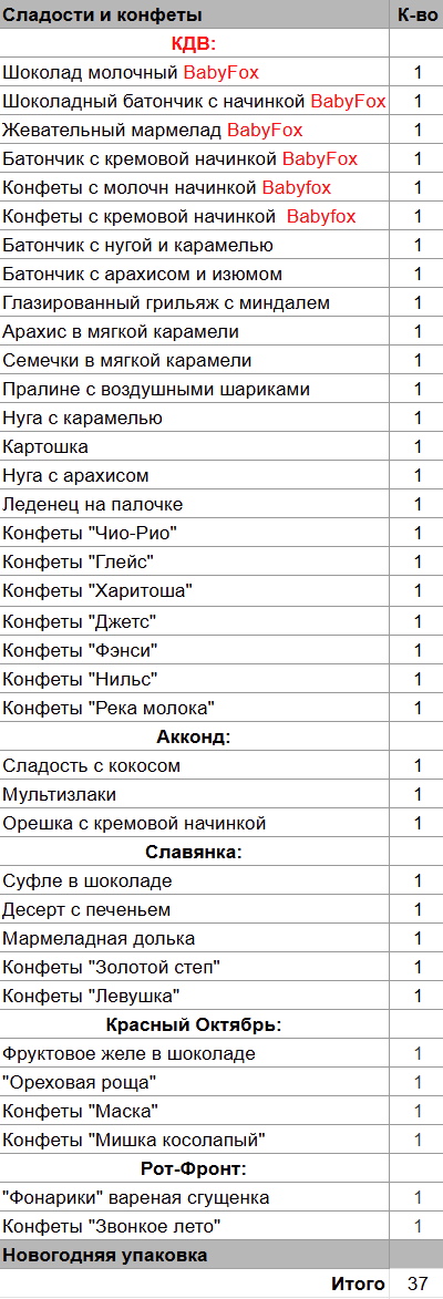 Кол-во сладостей: 37 шт.