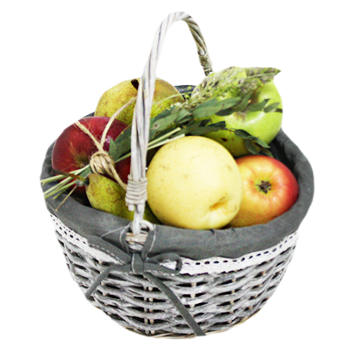 Состав: Корзина, фрукты яблоки и груши 2 кг, сухоцвет