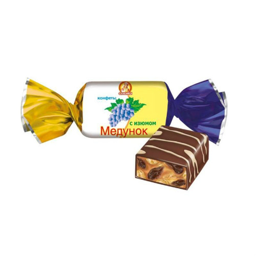 Конфеты Медунок с изюмом производства фабрики Славянка можно купить оптом с доставкой по Москве, Подмосковью и ЦФО. Низкая цена обусловлена отсутствием посредников при наличии прямого договора с производителем. Все актуальные сертификаты в наличии. Минимальный заказ: 1 коробка