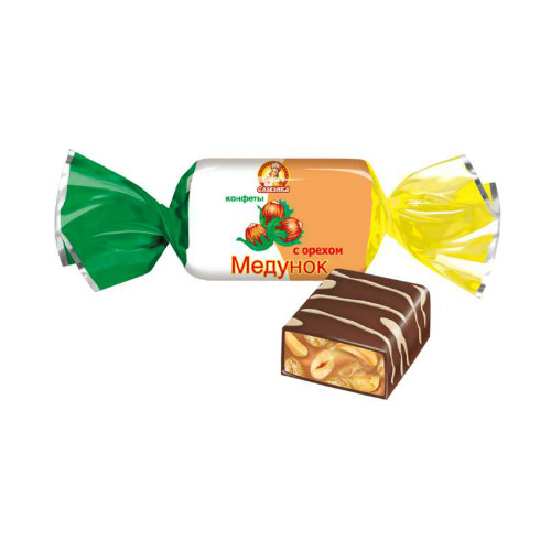 Конфеты Медунок с орехом производства фабрики Славянка можно купить оптом с доставкой по Москве, Подмосковью и ЦФО. Низкая цена обусловлена отсутствием посредников при наличии прямого договора с производителем. Все актуальные сертификаты в наличии. Минимальный заказ: 1 коробка