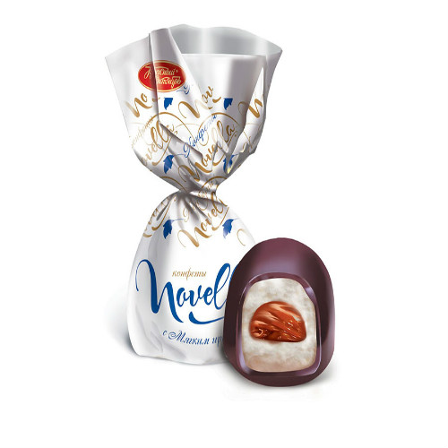 Конфеты Новелла Мягкий ирис производства Красный Октябрь можно купить оптом с доставкой по Москве, Подмосковью и ЦФО. Низкая цена обусловлена отсутствием посредников при наличии прямого договора с производителем.  Все актуальные сертификаты в наличии. Минимальный заказ: 1 коробка
