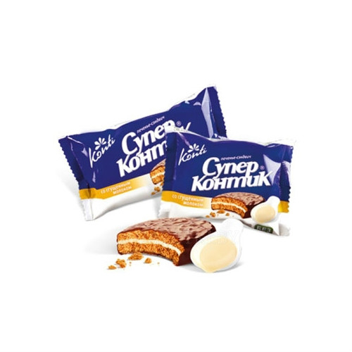 Печенье-сэндвич "Супер Контик" 50 грамм производства компании "Конти" можно купить оптом с доставкой по Москве, Подмосковью и ЦФО. Низкая цена обусловлена отсутствием посредников при наличии прямого договора с производителем. Все актуальные сертификаты в наличии. Минимальный заказ: 1 коробка