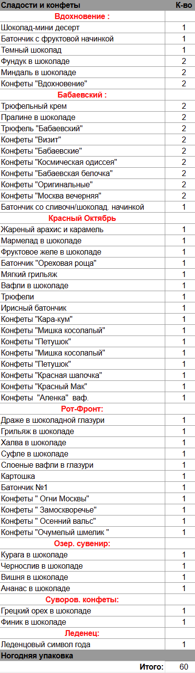 Кол-во сладостей: 60 шт.