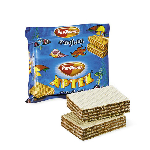 Вафли Артек 75 грамм производства Рот Фронт можно купить оптом с доставкой по Москве, Подмосковью и ЦФО. Низкая цена обусловлена отсутствием посредников при наличии прямого договора с производителем. Все актуальные сертификаты в наличии. Минимальный заказ: 1 коробка